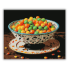 Édesség Özön a Halloween Tálban - számfestő készlet – 40×50 cm (Keret nélkül) Színes cukorkák tálban, melyek tökéletesen megidézik a Halloween szellemét. Az éles színek és a mintás kerámia tál varázslatos kontrasztot teremt. Számfestő készlet – Édesség