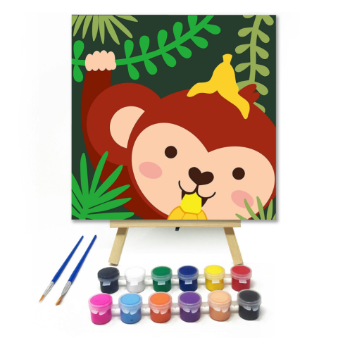 1 kép Számfestő.hu Éhes Majom - gyerek számfestő készlet – 20×20 cm (Keretre feszítve)