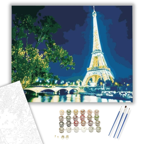 Eiffel Torony Kivilágítva - számfestő készlet – 40×50 cm (Keretre feszítve) Készíts gyönyörű műalkotásokat, előzetes festő tudás nélkül! Éld át az alkotás gyönyörű pillanatait és varázslatos hangulatát! Akkor is gyönyörű festményeket hozhatsz létre, ha mé