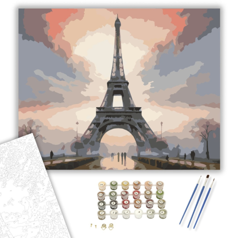 1 kép Számfestő.hu Eiffel-torony Ködfátyolban - számfestő készlet – 40×50 cm (Keretre feszítve)