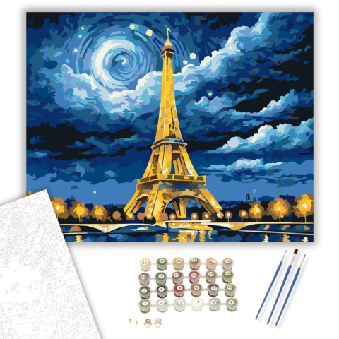 1 kép Számfestő.hu Éjszakai Torony Fényei - számfestő készlet – 40×50 cm (Keretre feszítve)