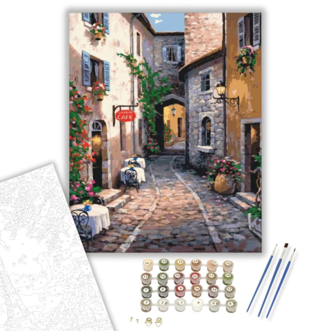1 kép Számfestő.hu Eldugott kávézó - számfestő készlet – 40×50 cm (Keretre feszítve)