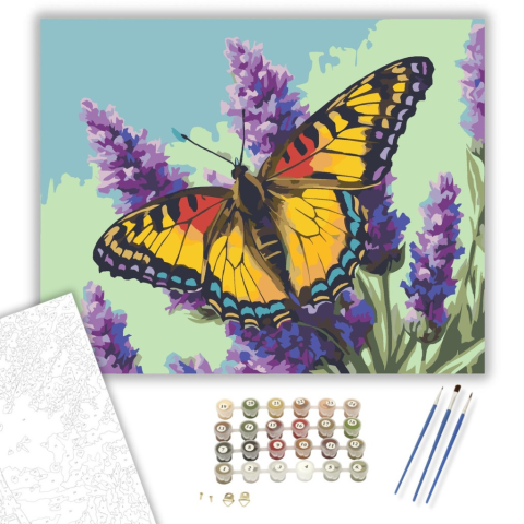 1 kép Számfestő.hu Élénk Pillangó és Levendula - számfestő készlet – 40×50 cm (Keretre feszítve)