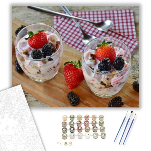 1 kép Számfestő.hu Eperrel díszítve - számfestő készlet – 40×50 cm (Keretre feszítve)