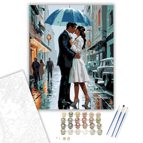 1 kép Számfestő.hu Esküvői Csók az Esőben - számfestő készlet – 40×50 cm (Keretre feszítve)