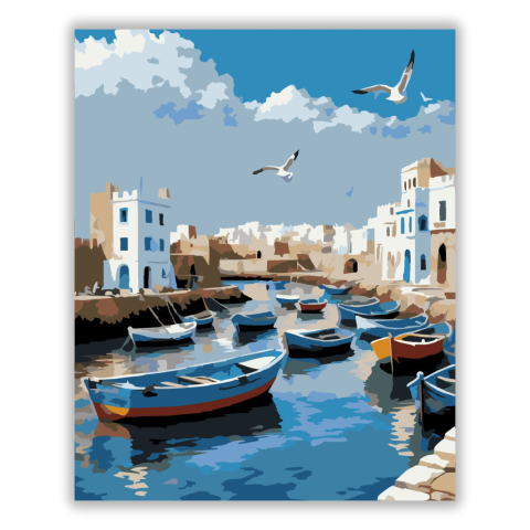 1 kép Számfestő.hu Essaouira Kikötője Kék Halászhajókkal - számfestő készlet