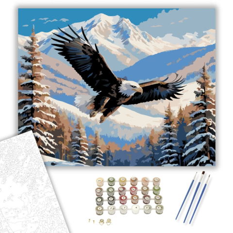 1 kép Számfestő.hu Fehérfejű Rétisas Téli Tájban - számfestő készlet – 40×50 cm (Keretre feszítve)