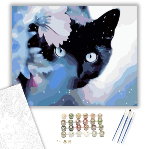 Fekete cica - számfestő készlet – 40×50 cm (Keretre feszítve) Készíts gyönyörű műalkotásokat, előzetes festő tudás nélkül! Éld át az alkotás gyönyörű pillanatait és varázslatos hangulatát! Akkor is gyönyörű festményeket hozhatsz létre, ha még nem festetté