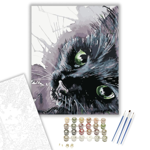 Fekete cica - számfestő készlet – 40×50 cm (Keretre feszítve) Készíts gyönyörű műalkotásokat, előzetes festő tudás nélkül! Éld át az alkotás gyönyörű pillanatait és varázslatos hangulatát! Akkor is gyönyörű festményeket hozhatsz létre, ha még nem festetté