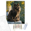 Fekete Maine Coon Kőfalon - számfestő készlet – 40×50 cm (Keretre feszítve) A festmény egy tekintélyt parancsoló fekete Maine Coon macskát ábrázol, amint egy kőfalon ül. Az aranyszínű szemek és a puha bundát megvilágító esti fény titokzatos hangulatot ter