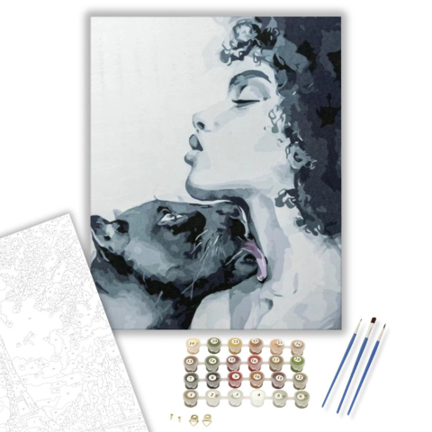 Fekete párduccal - számfestő készlet – 40×50 cm (Keretre feszítve) Készíts gyönyörű műalkotásokat, előzetes festő tudás nélkül! Éld át az alkotás gyönyörű pillanatait és varázslatos hangulatát! Akkor is gyönyörű festményeket hozhatsz létre, ha még nem fes