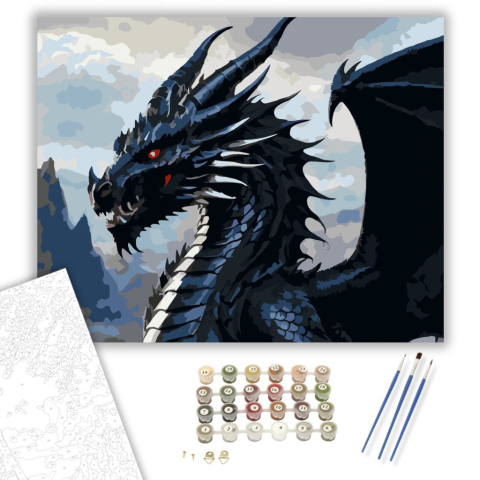 1 kép Számfestő.hu Fekete Sárkánykirálynő - számfestő készlet – 40×50 cm (Keretre feszítve)