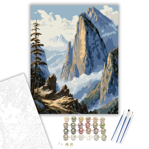 Fenséges Hegyi Kilátás - számfestő készlet – 40×50 cm (Keretre feszítve) A festmény grandiózus hegyláncot ábrázol, amely a természet lenyűgöző szépségét tárja elénk. A színek gazdag palettája és a finom ecsetkezelés hűen visszaadja a hegyek árnyalatait és