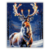Fénylő Téli Csodák - számfestő készlet – 40×50 cm (Keret nélkül) E kép középpontjában egy impozáns szarvas áll, agancsait színes fények övezik, mint egy ünnepi ékesség. A háttérben a hóval borított fák és az éjszakai égbolt bűvös hangulatot teremt, ragyog