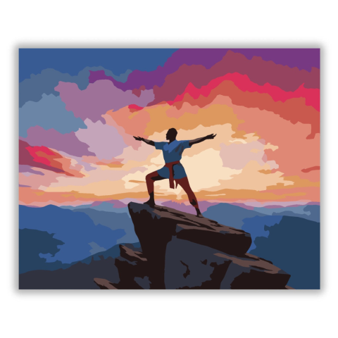 1 kép Számfestő.hu Férfi Virabhadrasana II Pózban Hegytetőn - számfestő készlet
