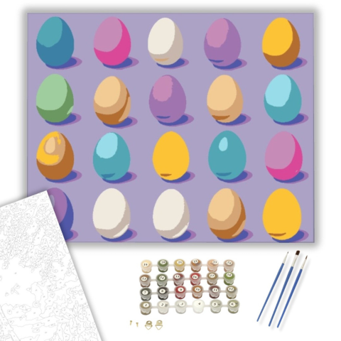 Festett Tojások - húsvéti számfestő készlet – 40×50 cm (Keretre feszítve) Készíts gyönyörű műalkotásokat, előzetes festő tudás nélkül! Éld át az alkotás gyönyörű pillanatait és varázslatos hangulatát! Akkor is gyönyörű festményeket hozhatsz létre, ha még