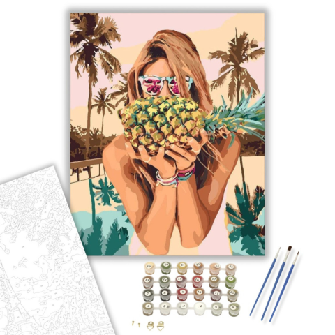 Finom ananász - számfestő készlet – 40×50 cm (Keretre feszítve) Készíts gyönyörű műalkotásokat, előzetes festő tudás nélkül! Éld át az alkotás gyönyörű pillanatait és varázslatos hangulatát! Akkor is gyönyörű festményeket hozhatsz létre, ha még nem festet