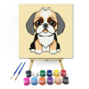 Foltos kis kedvenc - gyerek számfestő készlet – 20×20 cm (Keretre feszítve) Itt van egy aranyos kis kutyus, aki kíváncsian néz rád, mintha csak játszani hívna! A barátságos barna és fehér színek vidám hangulatot árasztanak. Tökéletes választás a gyerekek