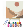 Folyó - gyerek számfestő készlet – 20×20 cm (Keretre feszítve) Ez a bájos kép egy kanyargó folyócskát ábrázol, amely vidáman kanyarog a hegyek között, miközben a nap mosolyogva figyeli a tájat. A meleg színek barátságos hangulatot teremtenek, tökéletesen