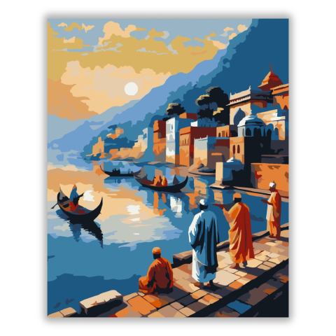 1 kép Számfestő.hu Gangesz Folyó Hajnalban - számfestő készlet