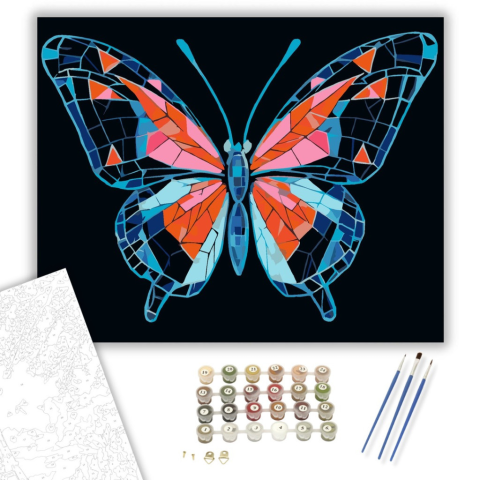 1 kép Számfestő.hu Geometrikus Pillangó Neon Színekben - számfestő készlet – 40×50 cm (Keretre feszítve)