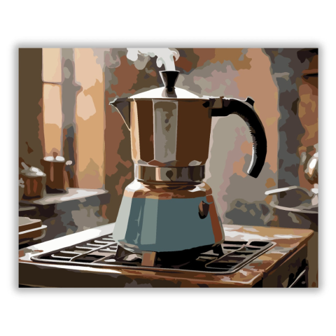 1 kép Számfestő.hu Gőzölgő Moka Kávéfőző Reggeli Fényben - számfestő készlet