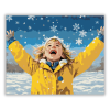 Gyermek Hóból Örömet Merít - számfestő készlet – 40×50 cm (Keret nélkül) A festmény egy sárga kabátos gyermeket ábrázol, aki tárt karokkal élvezi a hóesést egy nyílt mezőn. A hideg kék és fehér színek kontrasztban állnak a kabát élénk sárgájával, vidám és