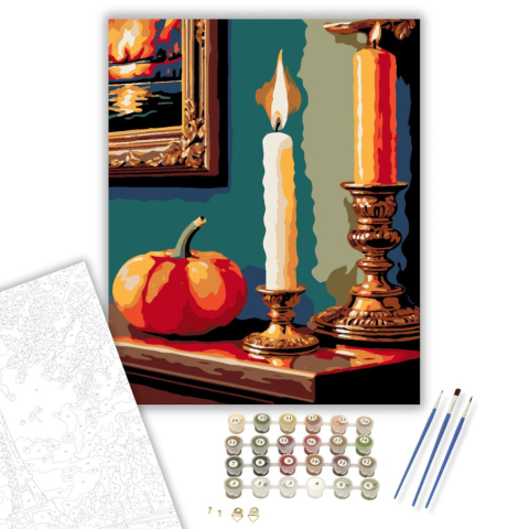 1 kép Számfestő.hu Gyertyafényes Őszi Hangulat - számfestő készlet – 40×50 cm (Keretre feszítve)