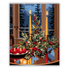 Gyertyafényes Ünnepi Harmónia - számfestő készlet – 40×50 cm (Keret nélkül) A kép középpontjában fenségesen ragyogó aranygyertyák állnak, melyeket a magyal levelek és piros bogyók elegáns ölelése ékesít. Az ablakon túl a kékes, fenyvesekkel teli háttér hű