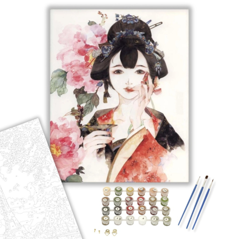 Gyönyörű Gésa - számfestő készlet – 40×50 cm (Keretre feszítve) Készíts gyönyörű műalkotásokat, előzetes festő tudás nélkül! Éld át az alkotás gyönyörű pillanatait és varázslatos hangulatát! Akkor is gyönyörű festményeket hozhatsz létre, ha még nem festet