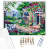Gyönyörű Kert - számfestő készlet – 40×50 cm (Keretre feszítve) A festmény egy békés, idilli kert hangulatát árasztja, amely az otthon melegét és nyugalmát idézi. A kép mesél egy helyről, ahol a természet és az ember alkotta világ harmonikusan találkozik.