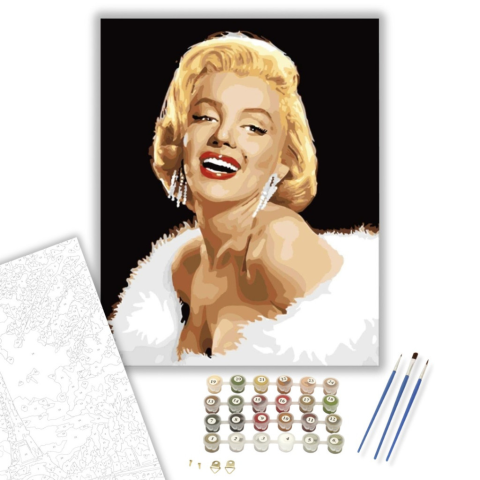 Gyönyörű Marilyn Monroe - számfestő készlet – 40×50 cm (Keretre feszítve) Készíts gyönyörű műalkotásokat, előzetes festő tudás nélkül! Éld át az alkotás gyönyörű pillanatait és varázslatos hangulatát! Akkor is gyönyörű festményeket hozhatsz létre, ha még