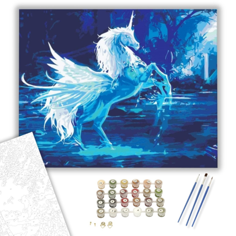 Gyönyörű Unikornis - számfestő készlet – 40×50 cm (Keretre feszítve) Ez a festmény egy varázslatos világba repít, ahol az álmok és a valóság határai elmosódnak. Egy misztikus történet bontakozik ki előttünk, melyben egy magányos unikornis áll a középpontb
