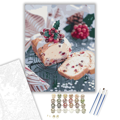 Gyümölcskenyér - számfestő készlet – 40×50 cm (Keretre feszítve) Készíts gyönyörű műalkotásokat, előzetes festő tudás nélkül! Éld át az alkotás gyönyörű pillanatait és varázslatos hangulatát! Akkor is gyönyörű festményeket hozhatsz létre, ha még nem feste