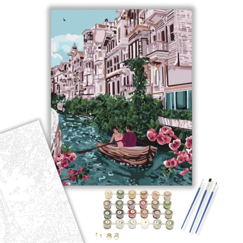 Hajókázás - számfestő készlet – 40×50 cm (Keretre feszítve) Készíts gyönyörű műalkotásokat, előzetes festő tudás nélkül! Éld át az alkotás gyönyörű pillanatait és varázslatos hangulatát! Akkor is gyönyörű festményeket hozhatsz létre, ha még nem festettél