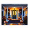 Halloweeni Este - számfestő készlet – 40×50 cm (Keret nélkül) Ez a festmény egy meghitt Halloween estét mutat be egy otthonos verandán, ahol a lágyan világító töklámpások és az őszi virágok teremtenek barátságos hangulatot. Számfestő készlet – Hallowee