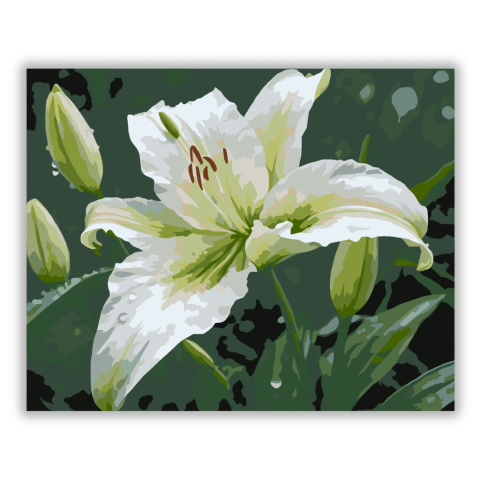 1 kép Számfestő.hu Harmatcseppes Fehér Liliom - számfestő készlet