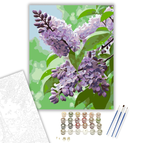 1 kép Számfestő.hu Harmatcseppes Lila Orgona - számfestő készlet – 40×50 cm (Keretre feszítve)