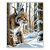 Havas Erdő Hiúza - számfestő készlet – 40×50 cm (Keret nélkül) A festmény egy hiúzt ábrázol, amint óvatosan mozog a havas erdőben. A hideg kék és a meleg barna árnyalatok kontrasztja életre kelti a téli tájat. A kép a csendes figyelem és a természetes rej