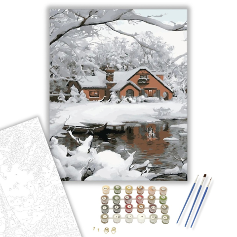 1 kép Számfestő.hu Havas otthon - számfestő készlet – 40×50 cm (Keretre feszítve)