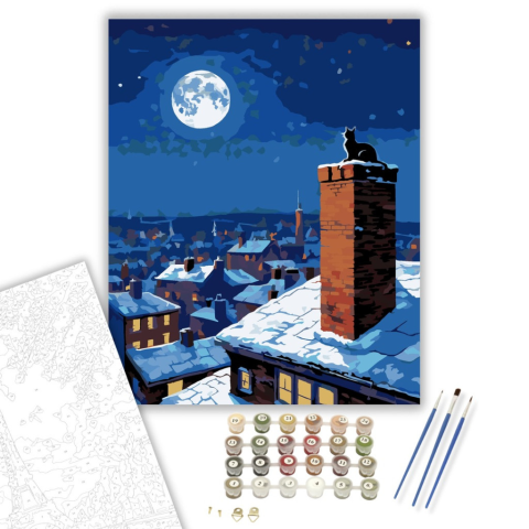 1 kép Számfestő.hu Havas Városi Tető Macskával - számfestő készlet – 40×50 cm (Keretre feszítve)