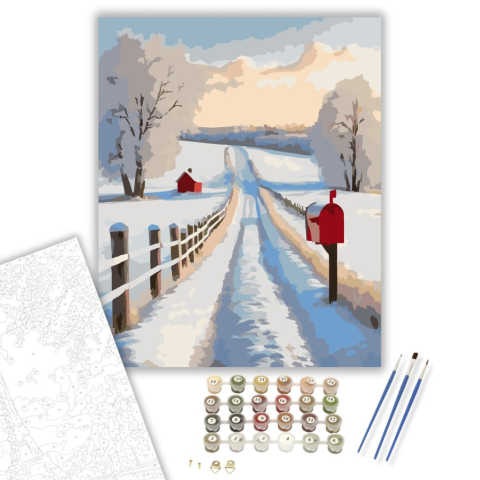 1 kép Számfestő.hu Havas Vidéki Út Postaládával - számfestő készlet – 40×50 cm (Keretre feszítve)