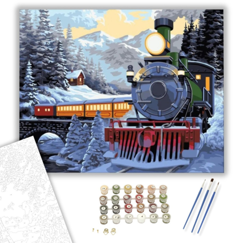 1 kép Számfestő.hu Havas vonat - számfestő készlet – 40×50 cm (Keretre feszítve)