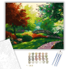 Híd az Erdőben - számfestő készlet – 40×50 cm (Keretre feszítve) Ez a festmény egy békés erdei táj varázslatos hangulatát idézi, ahol az idő megállni látszik. A híd sejtelmesen vezet át a buja növényzeten, mintha egy titokzatos világba kalauzolna. A vibrá