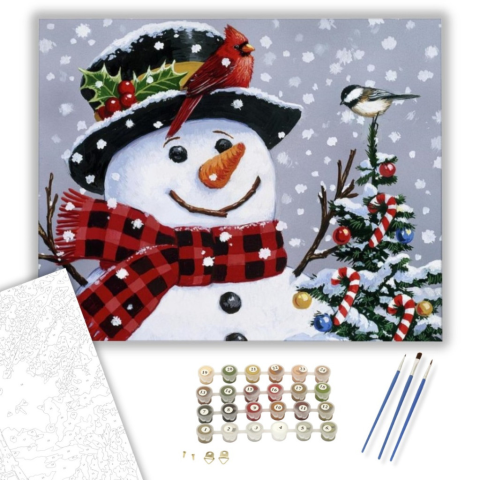 1 kép Számfestő.hu Hóember hóesésben - számfestő készlet – 40×50 cm (Keretre feszítve)
