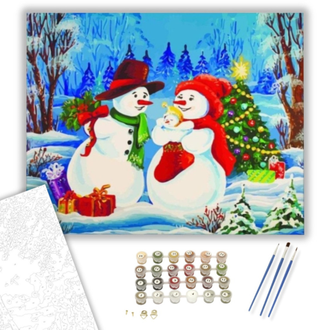 1 kép Számfestő.hu Hóemberek karácsonya- számfestő készlet – 40×50 cm (Keretre feszítve)