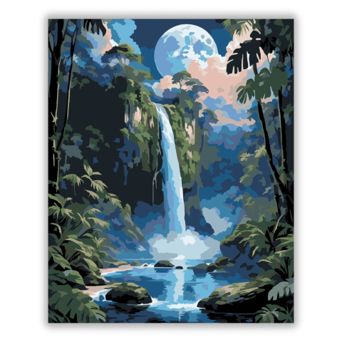 1 kép Számfestő.hu Holdfényes Dzsungel Vízesés - számfestő készlet
