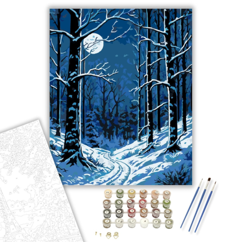 1 kép Számfestő.hu Holdfényes Havas Erdő - számfestő készlet – 40×50 cm (Keretre feszítve)