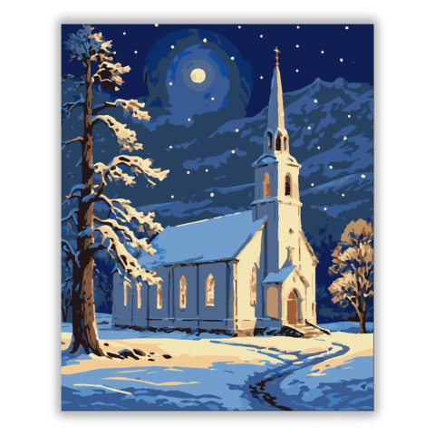 1 kép Számfestő.hu Holdfényes Téli Templom - számfestő készlet