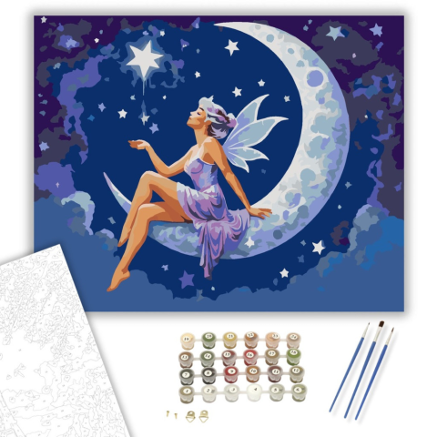 1 kép Számfestő.hu Holdtündér Csillaggal - számfestő készlet – 40×50 cm (Keretre feszítve)